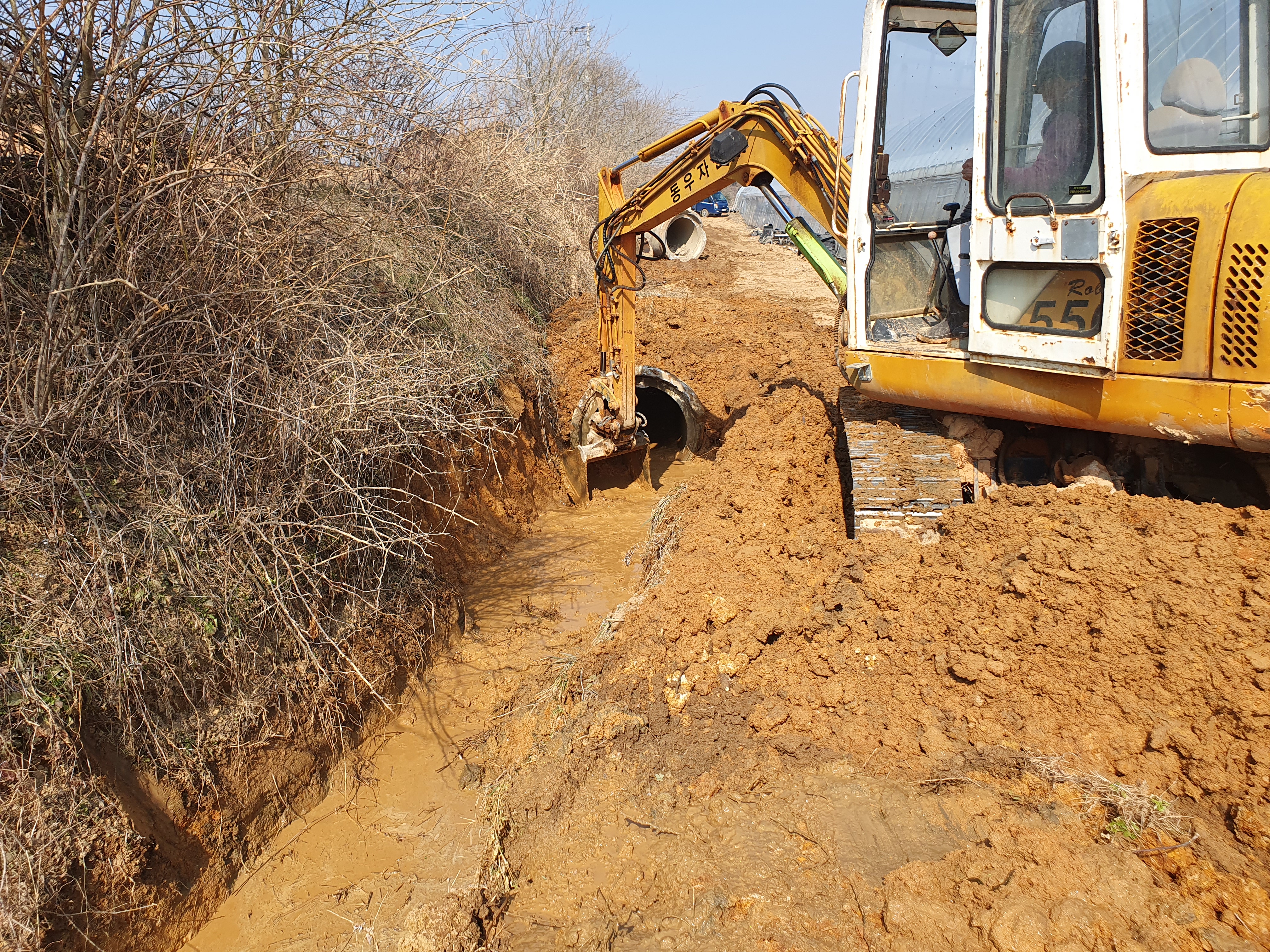 농장 한쪽에서는 아버지께서 배수로 작업을 하시는 모습입니다. 배수관 크기에 비해 굴착기가 작아 힘들었지만, 부자간의 협동작전으로 배수관 4개를 매립하는데 성공했습니다. 아버지께서 연세가 있으셔도 아직 못하는 일이 없으시네요^^