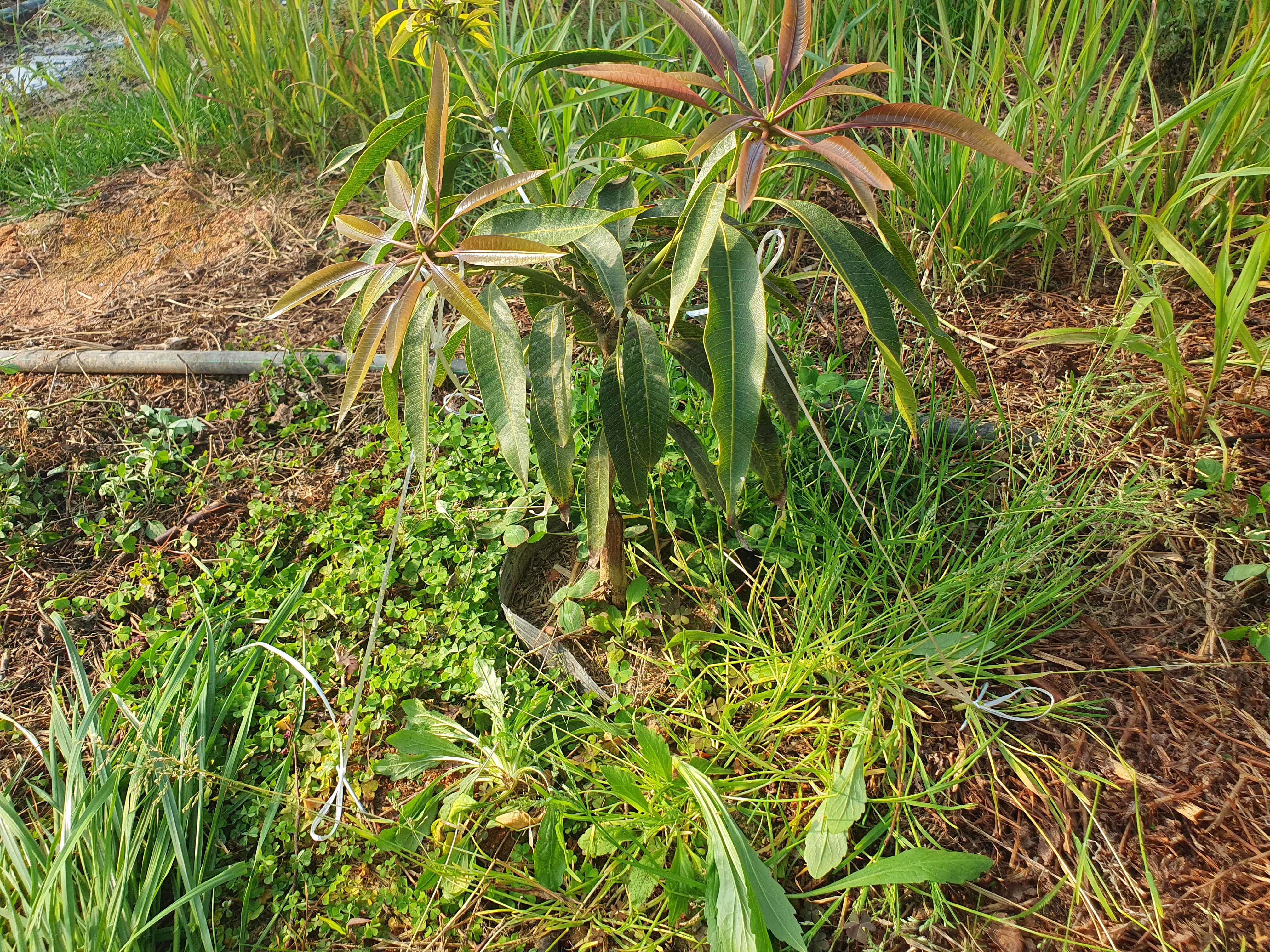 오후에는 망고하우스에서 나무 수형을 잡기 위해 유인작업을 진행했습니다. 이곳 하우스에서는 내년에 첫 수확을 생각하고 있는데요. 망고는 다 자라면 20미터 정도로 크게 자라는 나무이기 때문에, 하우스 안에서 재배해야 하는 국내 특성상, 나무 키를 낮추고, 크기를 줄이기 위해 수형관리를 해야 합니다. 위로 자라는 대신 옆으로 자라게 하는 작업이에요. 혼자서 작업하려니 시간이 엄청 걸리네요...