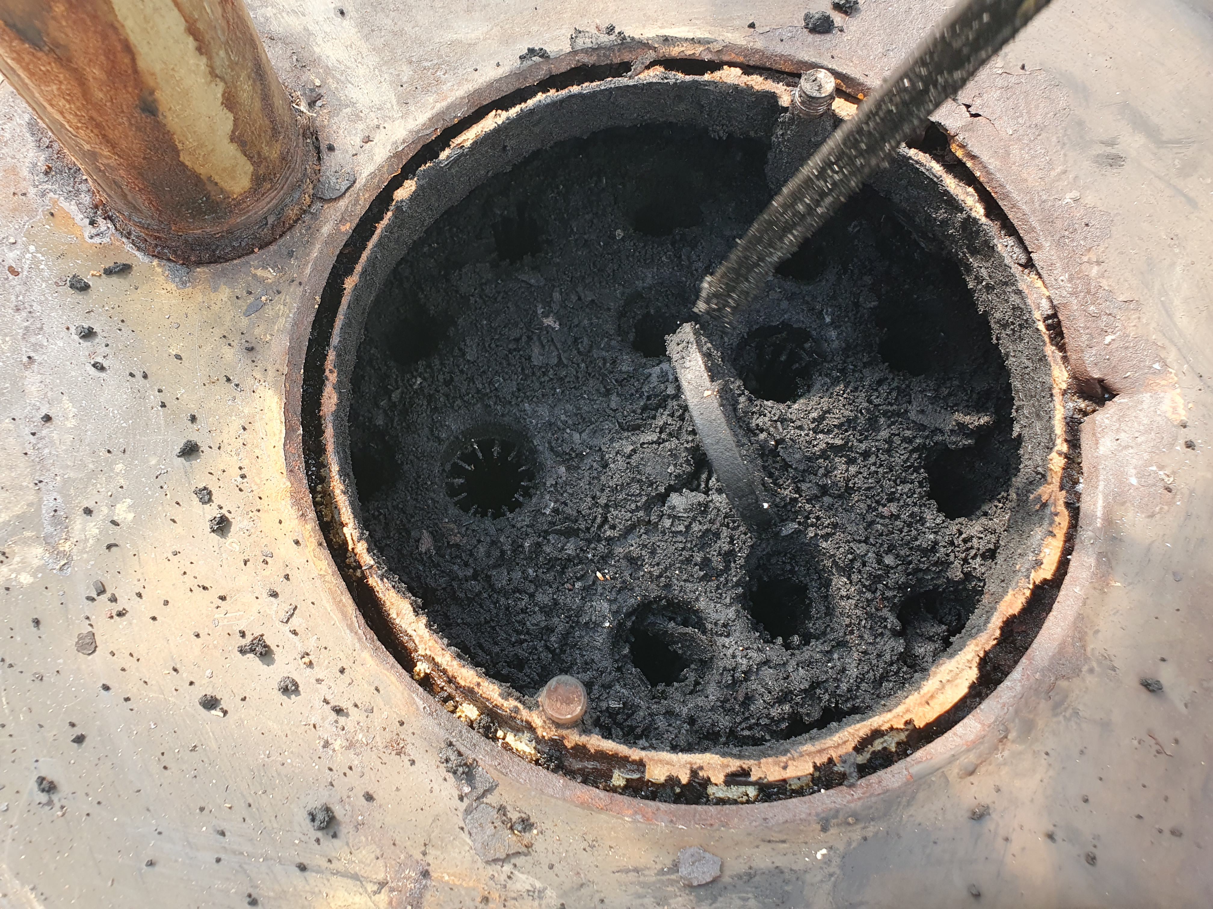 뭐 종종 있는 일들이긴만... 하루에 연달아 문제가 생기는 건 정말 드문 일입니다. 게다가 보일러도 연료분사 노즐만 교체하면 될거라 생각했지만, 몸통 내부가 완전히 그을음과 재로 막혀버려서 다 뜯고 청소해야 했습니다.